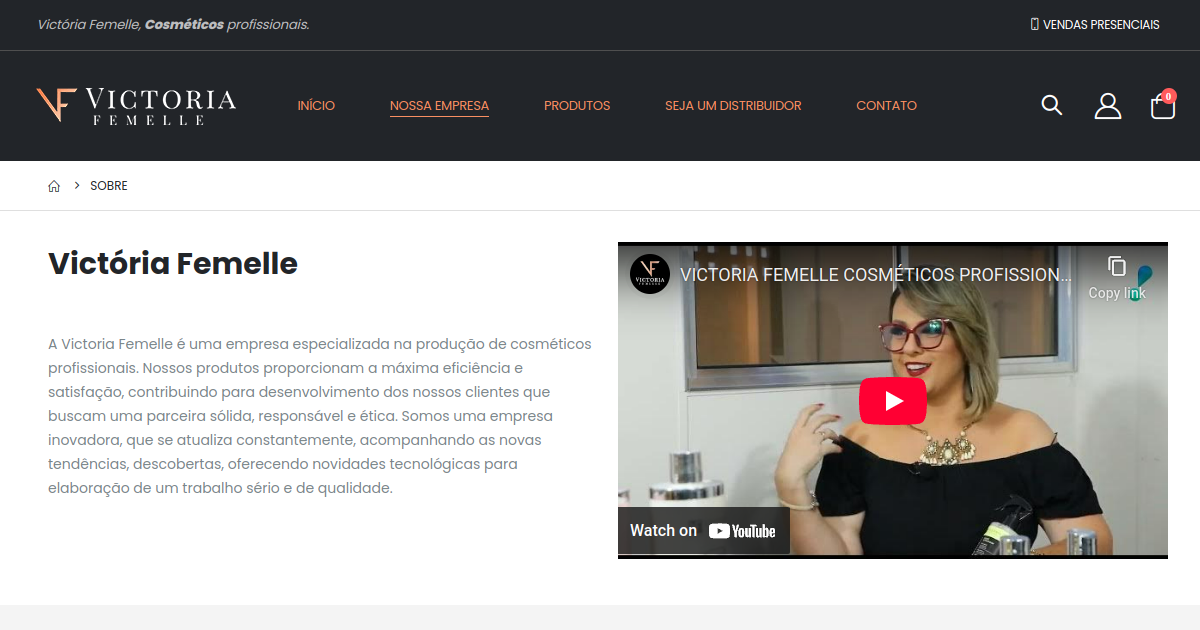 A Victoria Femelle é uma empresa especializada na produção de cosméticos profissionais. Nossos produtos proporcionam a máxima eficiência e satisfação, contribuindo para desenvolvimento dos nossos clientes que buscam uma parceira sólida, responsável e ética. Somos uma empresa inovadora, que se atualiza constantemente, acompanhando as novas tendências, descobertas, oferecendo novidades tecnológicas para elaboração de um trabalho sério e de qualidade.